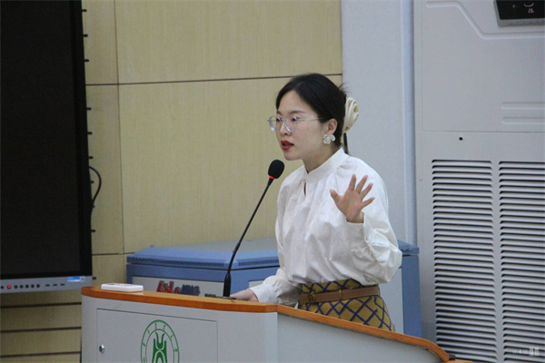 郭艺佳以徐本禹的奉献事迹引入,强调社会实践活动要求学生开展有实用意义的研究与实践,最终达到对自然、对社会、对自我的清晰认识,完成学生自身价值与社会价值的相统一。