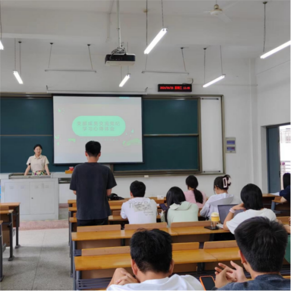 会议伊始,她讲述了主题为“2024让党纪学习教育‘见实效’”的主题党课。她指出,广大党员应当以"主人翁"身份"躬身入局",拒绝做党纪教育的"过客、看客、谈客",以“力学、自省、笃行”的态度全身心投入到党纪学习教育"热潮"中,以高起点、高标准、高质量开展好党纪学习教育,真抓实干推进党纪学习教育走深走实,取得实效。对此,她对支部党员提出了三点要求。第一,不当走马观花的“过客",躬身力学、常修常悟,让党纪学习走深走实;第二,不当置身事外的"看客",躬身自省、慎独慎微,让警示教育增质增效;第三,不当口若悬河的“谈客",躬身笃行、善作善成,让党性修养入心入行。授课结束后,支部成员丁彪同志分享了自己的党纪学习心得。