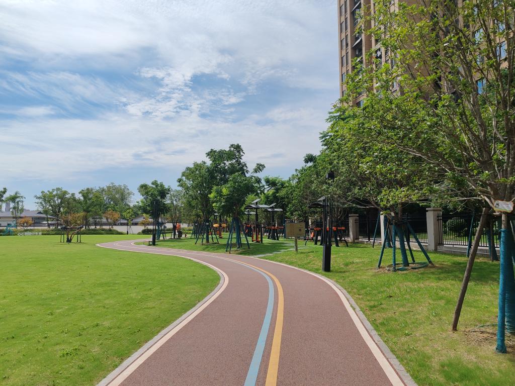 随后,团队成员来到江欣苑社区共同缔造公园,实地理解社区践行“决策共谋、发展共建、建设共管、效果共评、成果共享”的“五共”方法路径。该公园建设于2022年9月5日,建设之初,社区收集民情民意,尊重民众健身、休闲的共同需求。同时,社区通过“1元捐众筹”“金点子奖”等活动,激发群众参与积极性与主动性,引导居民有序参与公园建设。在整个建设过程中,群众为共建项目主,自发平整场地、搬运工料、修建草坪,还自制绿豆汤送清凉慰问建设工人,使公园建设办成真正以“民心”出发的共同缔造项目。团队发现,场地中处处存在民众使用、维护、管理的内容。除了崭新的环园跑道、健身器材以及以体育运动为主题的儿童游乐设施,园中植物都拥有这一张写有居民名字的认领牌,公共健身设施旁设置智能管理平台并设置社区居民所提倡的江欣园文明公约,有关于运动健康的相关内容结合铺地、雕塑、宣传栏等形式寓教于乐,鼓励促进全民运动,增强人民群众的获得感和幸福感。