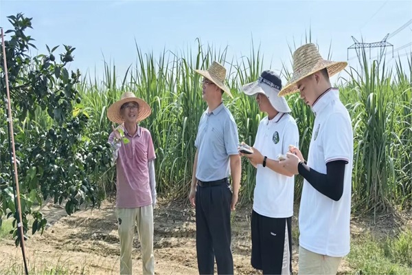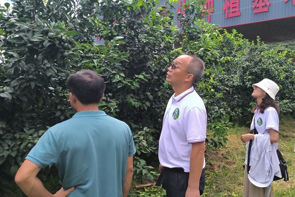 随后,实践团来到广西益才脆蜜金柑示范园,陆经理表示面对恶劣气候时,生产上落花落果情况严重,树势弱、果实品质差,果实控制不住,只能选择打激素或打药等措施进行补救。陆经理特别提到,不同情况采取何种栽培措施仍是一大难题,强调需要和高校和研究所紧密合作,加强“产学研”,改进栽培管理。