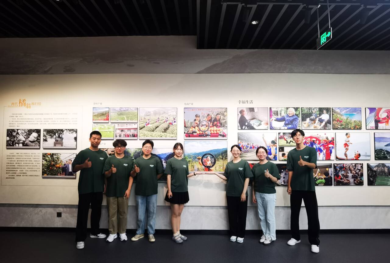 团队成员们在秭归优势产业展示板前合照
