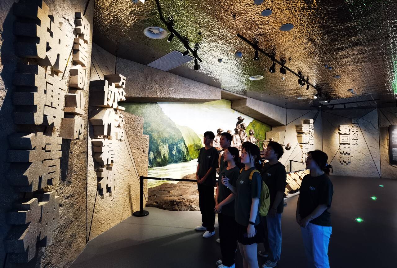 位于宜昌市秭归县的这座占地面积约2万平方米的湖北三峡移民博物馆,集文物收藏、展示、科研、教育为一体,吸引无数参观者前来了解这段波澜壮阔的历史。在肖晗老师和陈炫希老师的带领下,本禹志愿服务队成员们走进移民博物馆进行参观。通过馆中一幅幅写实的画作、一组组黑白的照片、一件件珍贵的文物以及丰富的多媒体展示,实践队成员们看到了当地人民舍小家、顾大家的高尚品质,也感受到了顽强拼搏、自强不息的移民精神。