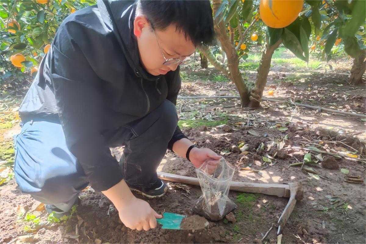与此同时,实践团在对陈站长进行采访时,陈站长提到:“内裂现象不止发生在砂糖橘上,脐橙种植果园也会发生,这与当年的降水量、海拔等环境因素以及施肥量、套袋等人为因素有密不可分的关系。”实践团紧接着针对这几个方向对果园内裂现象进行了重点调研,其中包括典型裂果采样、果园树体相关数据进行测量以及根系土壤采样等等,以便后续品质测定分析裂果发生的原因。