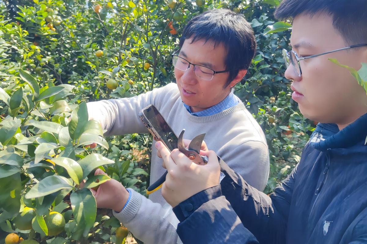 图为团队成员进行砂糖橘内裂果采样