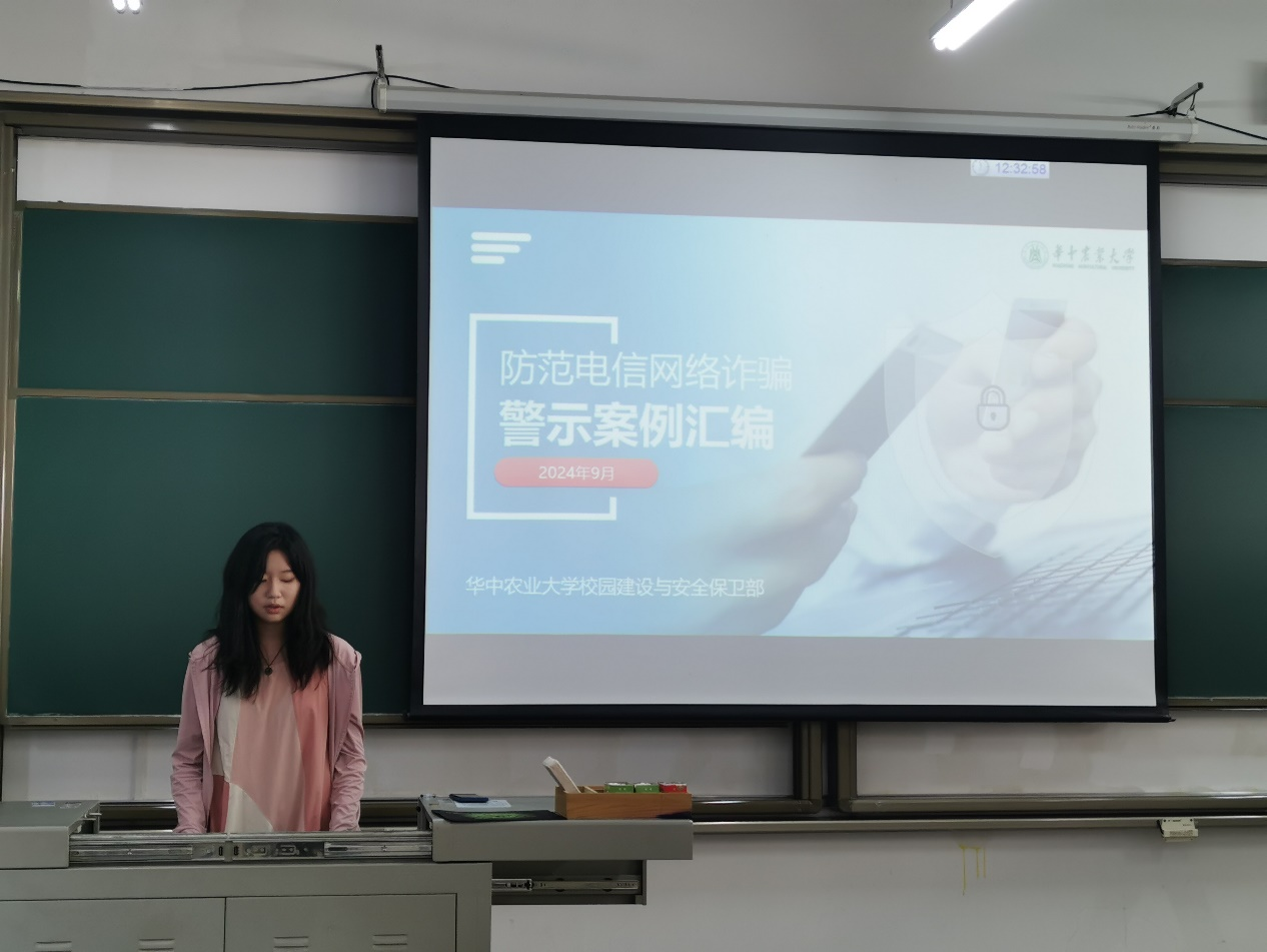 9月18日,设施与智慧园艺班在四教B101举办了以“筑牢安全防线,共筑和谐校园”为主题的九月班会。本次班会由班长王雨晨主持,聚焦于防诈骗宣传、消防安全、补充医保三大主题,旨在提升学生的安全意识和自我保护能力,维护校园安全稳定。