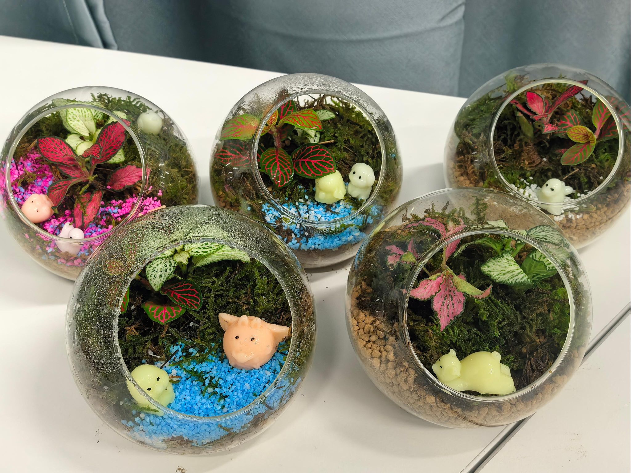 活动的核心之一是生态瓶制作,这一环节不仅让同学们亲手体验了生态构建的过程,更深刻地理解了生态系统的微妙平衡。在科协成员的耐心指导下,同学们将轻石、水苔、种植土、网纹草、苔藓、装饰沙和装饰石等材料巧妙结合,创造出了一个个充满生机的微型生态系统。每位参与者都全身心投入,从挖坑种植到精心装饰,每一步都透露出对自然的敬畏与爱护。