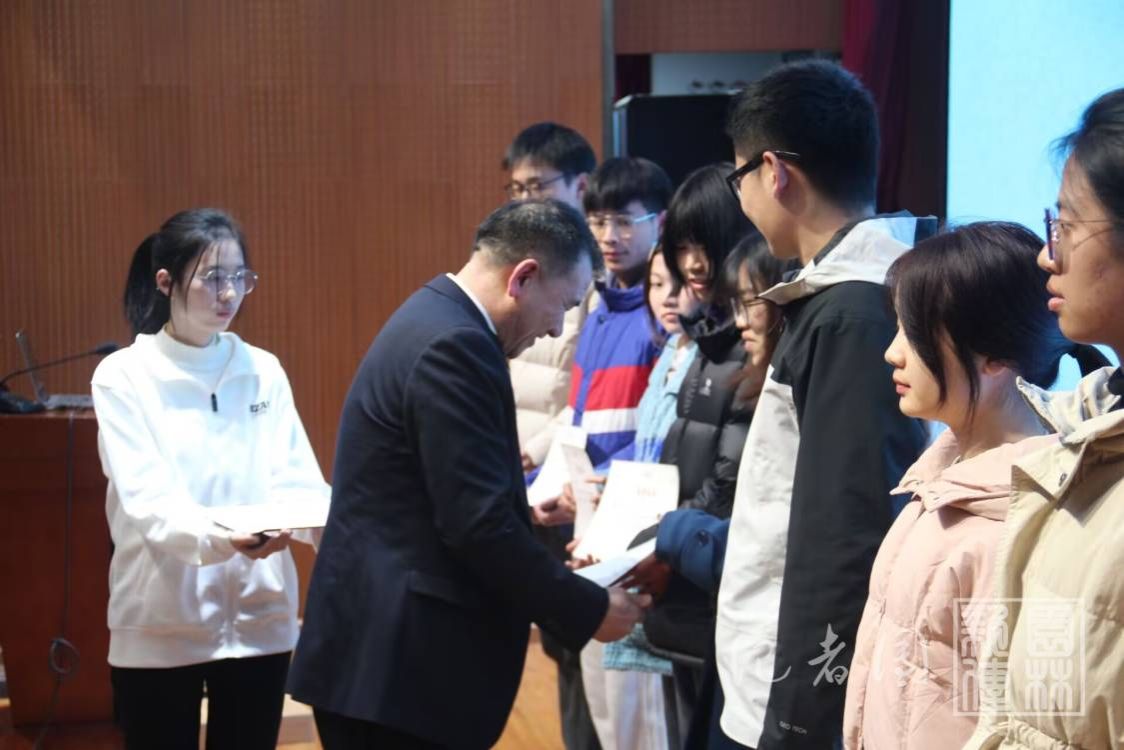 2024年12月26日晚七点,贝博ballbet官网2023-2024学年茶学专家、企业奖(助)学金在园林北楼228报告厅举行。湖北省宜昌思源慈善基金会秘书长夏雪、湖北省中兴食品有限公司总经理舒大成、湖北省中兴食品有限公司业务经理罗怀寅、恩施市立早生态农业有限公司武汉区域负责人胡东、恩施市立早生态农业有限公司业务经理吴建、恩施市立早生态农业有限公司业务经理陈贝林及茶学系各老师出席了本次活动。
