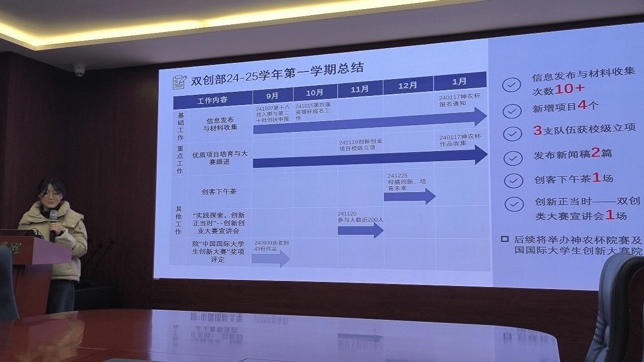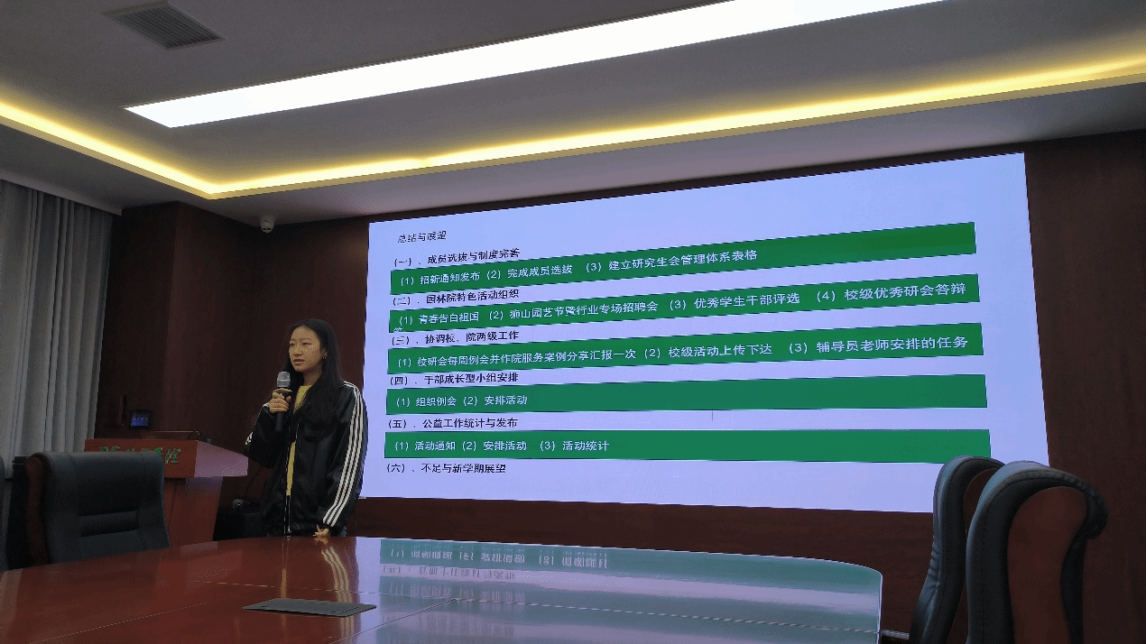 会议的后半段,艾弗森贝博ballbet官网研究生会各部门依次进行了上学期工作总结。各部门通过一页PPT的形式,清晰地展示了上学期的工作成果与经验教训,简洁明了地呈现了工作亮点与不足之处。其中,理研部总结了“青春告白祖国”系列活动、“永远跟党走,奋进新征程”活动的开展情况,以及在调研推进、校研会活动收官、联培生专项工作等方面的成绩与不足。