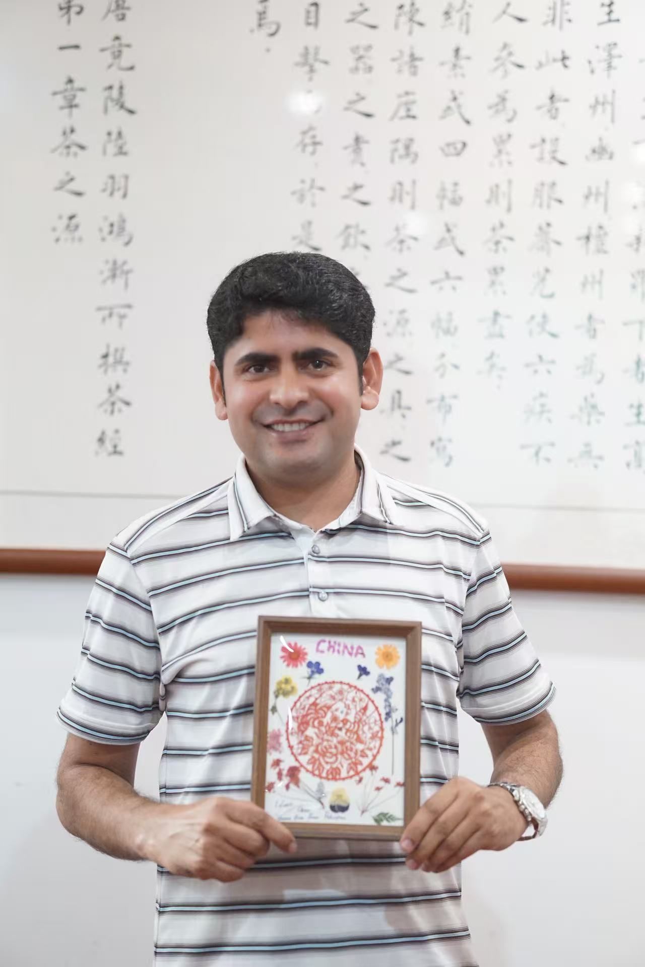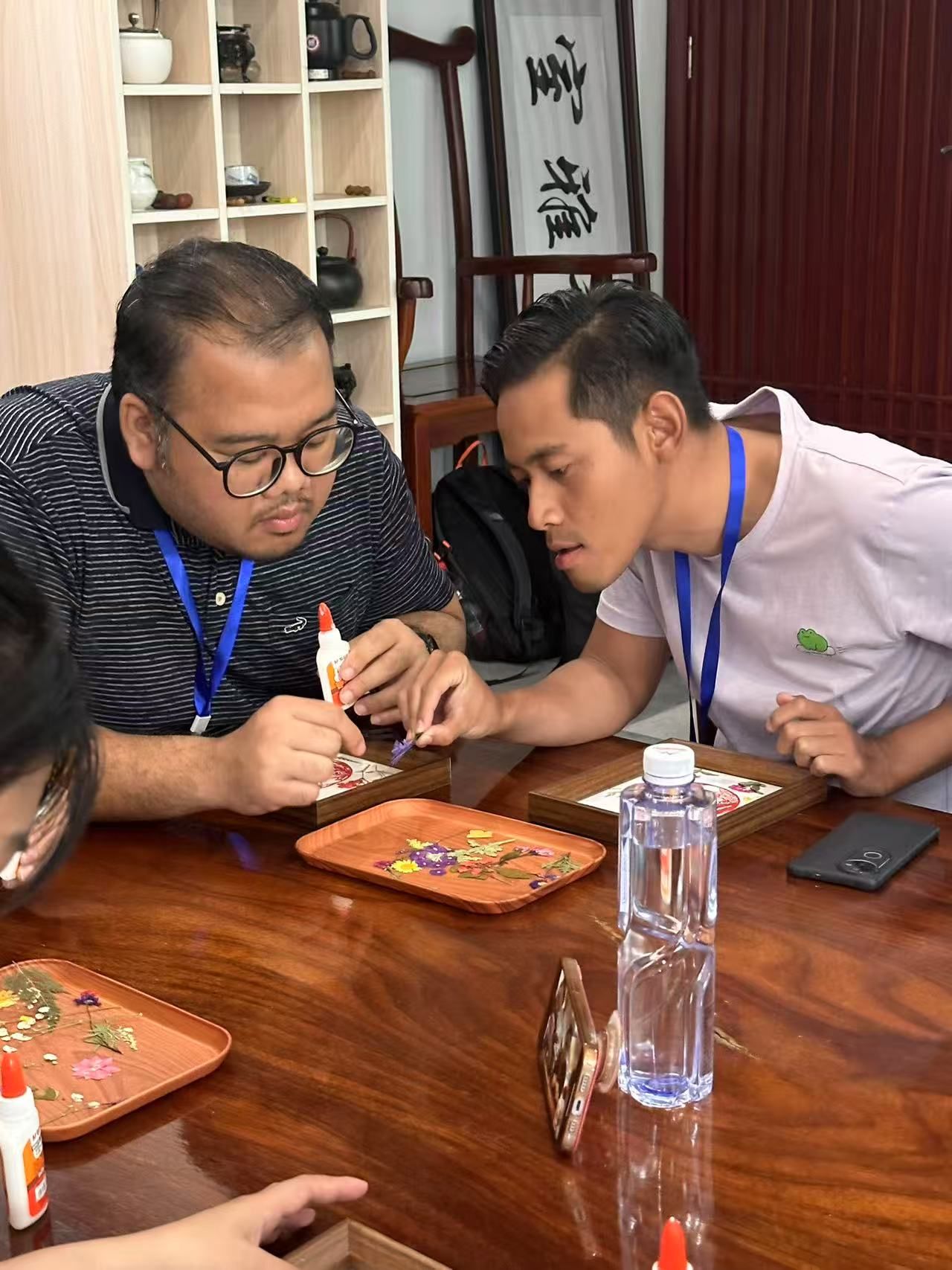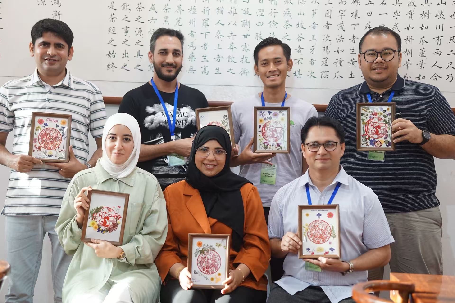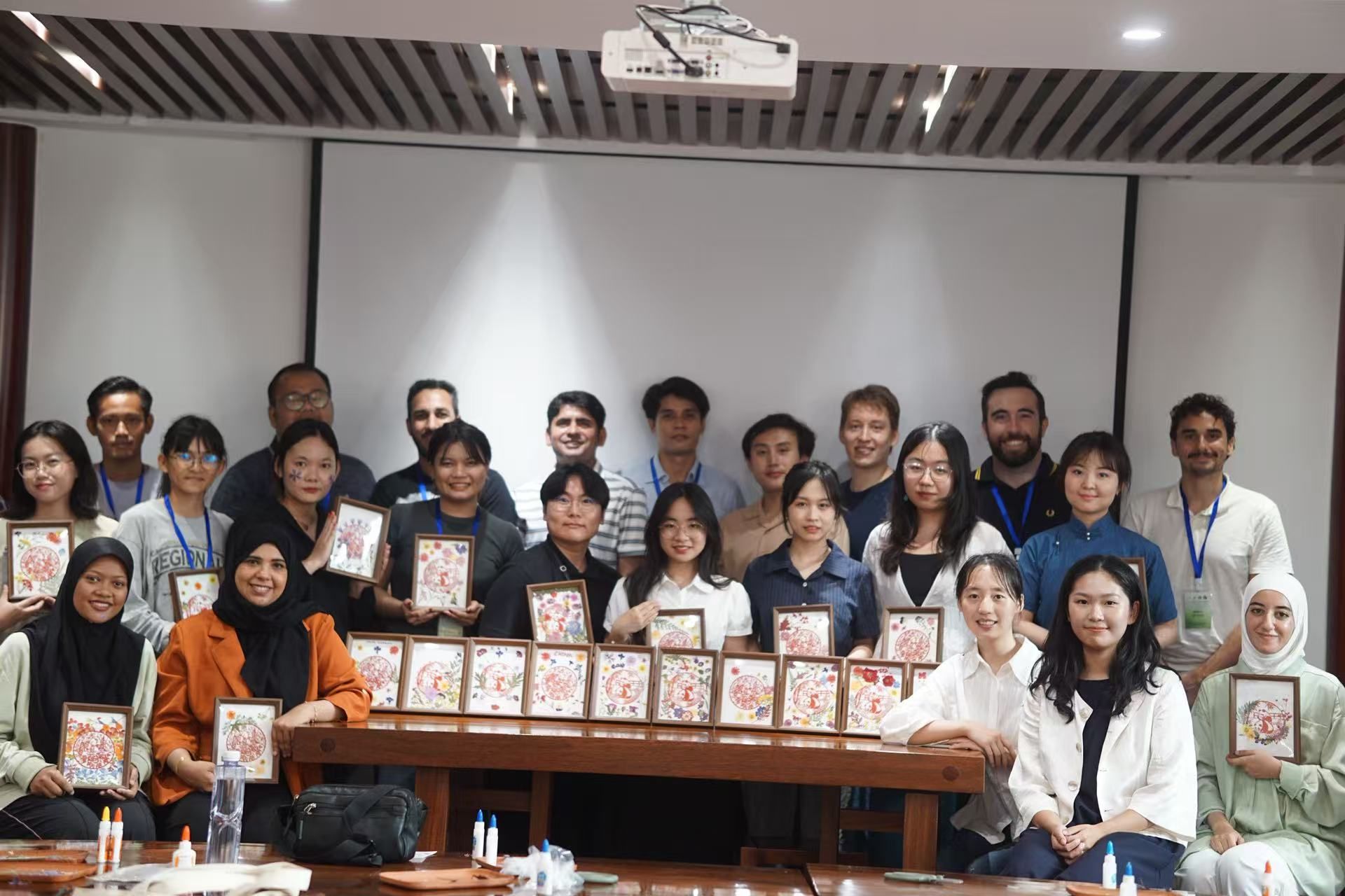 留学生和他们的押花作品合影 全体留学生和讲课老师合影