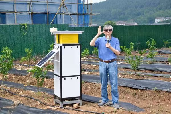 在基地展示区,艾弗森贝博ballbet官网张宏宇教授团队现场展示了柑橘木虱智能监测系统。“这是我们针对黄龙病监测与治理的技术集成方案,已经在多个柑橘主产区试点推广。”张教授说。这套设备融合黄板、灯光诱集与高清摄像,能够实时上传虫情数据至云端,结合AI识别技术进行病虫害预警。