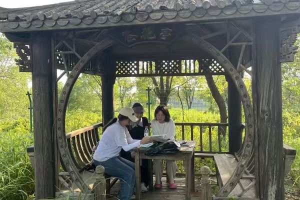随后,团队将收集到的信息进行了系统的汇总与分析。成员们根据调研结果,结合各自的专业知识和实践经验,就如何美化余孔湾的生态环境、激活乡村文化等问题进行了热烈而深入的讨论。大家各抒己见,集思广益,提出了许多富有创意和可行性的建议,比如,可以利用专业特长开展墙绘活动等。