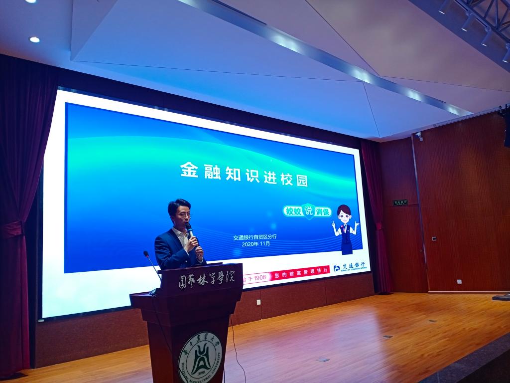 为落实巡察整改任务,2020年11月20日晚七点,由交通银行自贸区分行主办的“金融知识进校园”活动如期在园林北楼228召开,学院本科生、研究生代表参加本次宣讲。