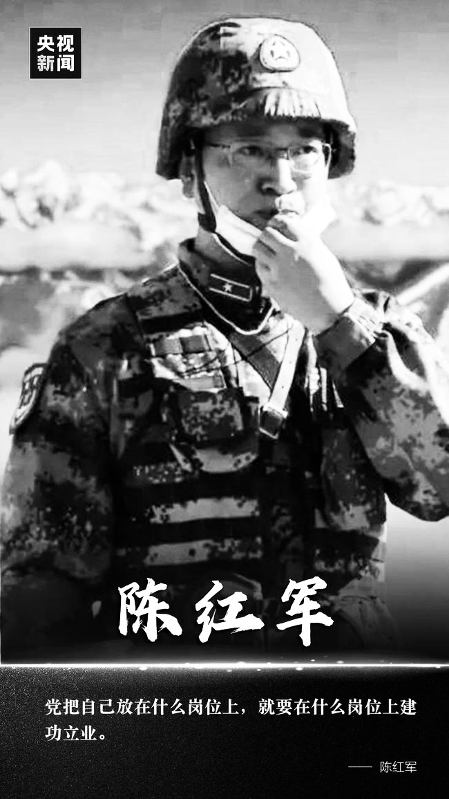 陈红军(1987年3月-2020年6月),男,汉族,甘肃省陇南市两当县人,西北师范大学毕业,研究生学历,中共党员。生前为中国人民解放军某机步营营长。2020年6月在对外斗争中毫不畏惧、英勇战斗,直至壮烈牺牲,年仅33岁。2021年2月,中央军委追授陈红军“卫国戍边英雄”荣誉称号。