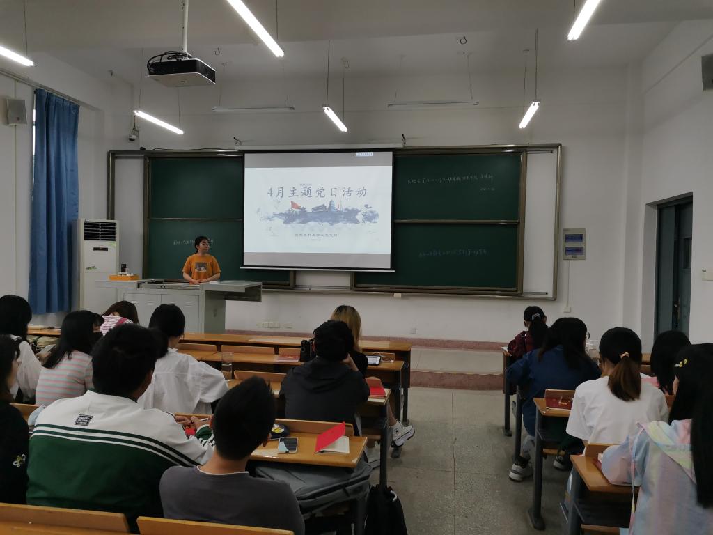 4月30日下午4:00,园林本科生第二党支部在四教C102开展4月份主题党日活动,党支部副书记胡雨琳同志从三个部分介绍了本次活动的学习内容,党支部书记、组织委员、宣传委员与其他党员同志参加此次活动。