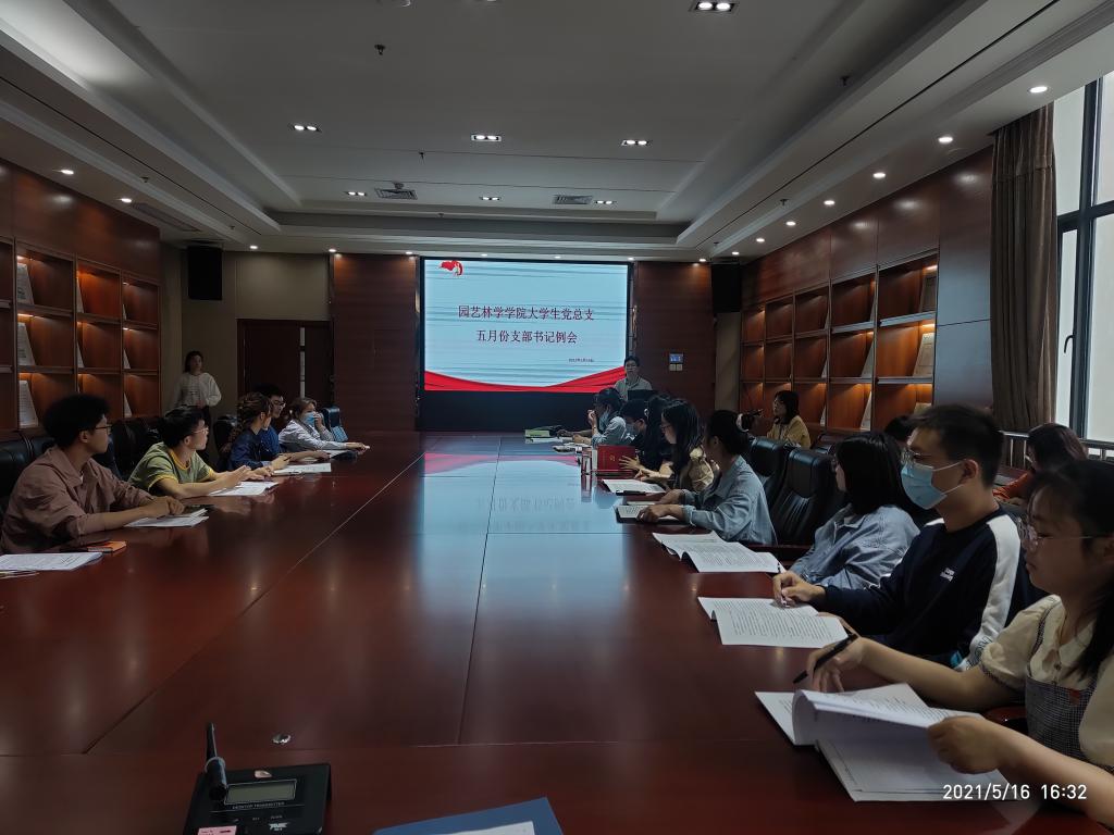 2021年5月16日下午4点,艾弗森贝博ballbet官网召开大学生党总支五月份支部书记例会,会议由大学生党总支书记蔡江主持,各学生支部书记先后汇报本学期支部党史学习教育的工作经验与特色做法。