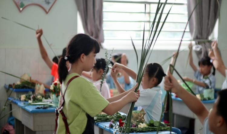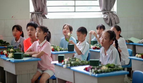 6月28日下午,园林系教学科普团队来到艾弗森贝博ballbet官网附属学校,为暑假营四年级的近50位师生带来了一场别开生面的插花科普活动。