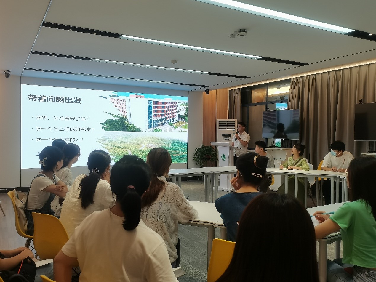 除了分享自身故事,汪志全向研究生新生抛出问题:你准备好读研了么?各位同学纷纷发言,主动向师兄请教问题,“您是怎么确定读博的?”、“您是如何发现自己的科研兴趣点的?”,在一来一回的问答中,汪志全用亲身经历向新生解疑答惑,引导同学们脚踏实地地做事,号召同学们做一名“与国家同行,为人民奉献”的青年人。