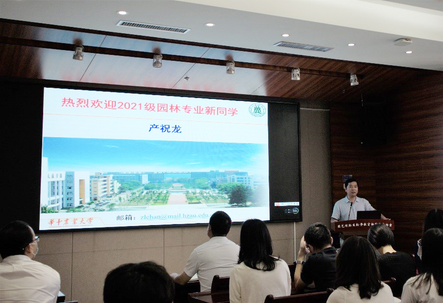 会议伊始,园林系主任产祝龙教授向同学们详细地介绍了学院和园林系专业的发展史、研究生导师的研究方向及本专业的研究材料和内容,并借用蔡元培先生的话寄语新生——“抱定宗旨,砥砺德行,敬爱师友”;产教授谈到,希望新生们注重学习,拥有抱负理想,学会创新思维,勤读力耕,立己达人,在研究生生涯中努力奋进。