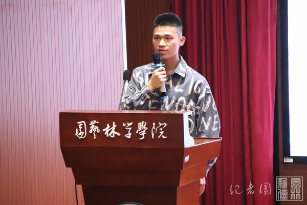 会上,他们分别讲述了自己由一名在校大学生成长为一名军人的历程。来自园艺2003班的退伍武警胡灿洪由“部队的一天”为切入点,展开分享了部队生活具体的模样。借助图片,他绘声绘色地讲述了部队的吃穿住行,让同学们了解到了日常操练的严格要求,军容风纪的一丝不苟,军营生活重复循环中所存在的机遇与挑战。他还表示参军入伍的原因一方面是学习生活中遇见了迷茫与困惑,足球兴趣和学习不能够两全,想为自己寻找动力,走出颓废;另一方面则是自幼便深藏于心的军装梦,希望给予自己一次从戎报国的机会。在结束新兵连的生活之后,胡灿洪被分配到了执勤中队,很快繁重枯燥重复的执勤任务让他心底自我怀疑,他开始想念学校,巨大的心理落差催生出不甘。天无绝人之路,一段时间后出现了转机,强军杯足球比赛召开,他因为出色的足球技术被选拔参赛,并随队夺得桂冠。他因为足球方面的特长被调到了机动中队服役。更严格的训练,更高的标准,每一样都让他热血沸腾,绝不认输的个性帮助他渐渐适应。最终也让他成长了许多,获得了战友与长官的认可和尊重。他还表示很高兴能在成长过程中有一段军旅生涯,也非常庆幸在军旅生活中培养出良好习惯,锻炼得一副健康身体。