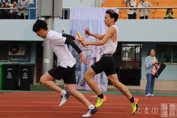 第三棒为弯道且距离较长,是接力赛中较为困难的部分,拿到接力棒的李佳硕脚下生风,奋力甩臂,沉稳发挥,一往无前,在观众的呐喊助威声中疾驰。最后一棒是最激动人心的决胜一棒,熊若愚也加足了马力,作为去年校运会优秀选手,很多人都将注意力集中在了他的身上,而他此时也展现出了良好的状态,调整好呼吸,最终以自信的姿态越过终点线。赢得了全场人的喝彩。最终贝博ballbet官网以45.891秒的好成绩荣获男子团体冠军。