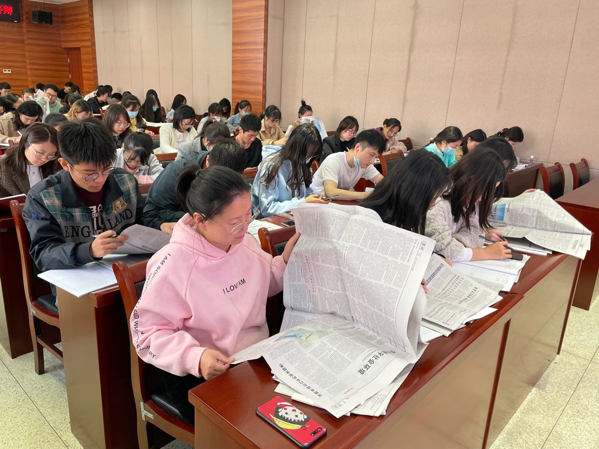读报环节,同学们认真阅读了发放的报纸,了解时政新闻,学习相关知识。