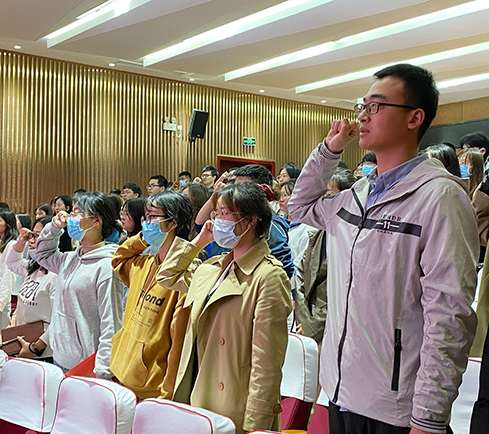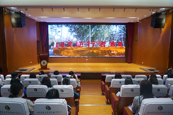 在园林北楼的228报告厅,师生党员代表、入党积极分子代表,集中观看《榜样5》专题节目,重温入党誓词。来自园林1704班的本科生马丹阳说道:“我们要学习榜样精神,汲取榜样力量,积极承担社会责任,在平凡中实现自身的价值,为学校和学院的发展贡献自己的力量。”