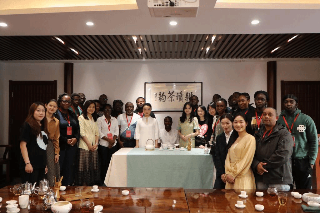 5月11日下午2:30,由国家商务部主办、我校艾弗森贝博ballbet官网与外国语学院联合承办的“农业技术培训班——中国茶文化培训活动”在园林楼226耕读茶室举办。艾弗森贝博ballbet官网外国语学院副教授王英振主讲,茶学专业研究生王淑腾、英语口译专业研究生苏童担任课程助教,来自安提瓜和巴布达的21名外交、农业、贸易部级官员和议员、部分农场主作为学员参加了本次活动。