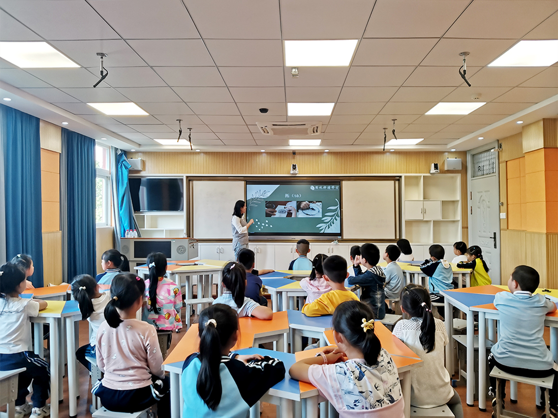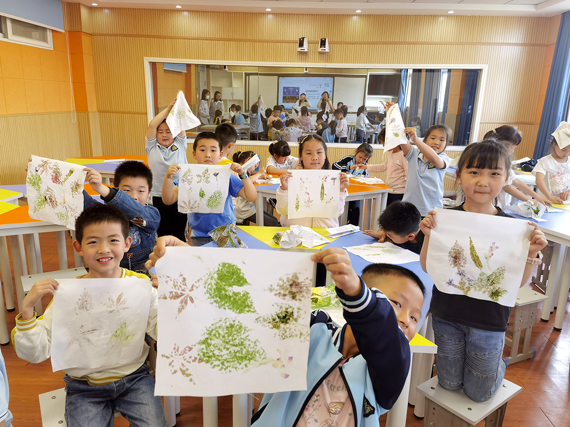 活动结束后,同学们都争先踊跃地展示着自己的作品,主动发问,抒发活动的体验感受。卢亚雯最后总结道,“植物不仅有拓染、还有蜡染、扎染,统称为植物染。这个工艺是我国优秀的非物质文化遗产,这次科普活动不只传播了植物的知识,还在孩子心中埋下真善美的种子,让他们更加了解自然、热爱自然。”