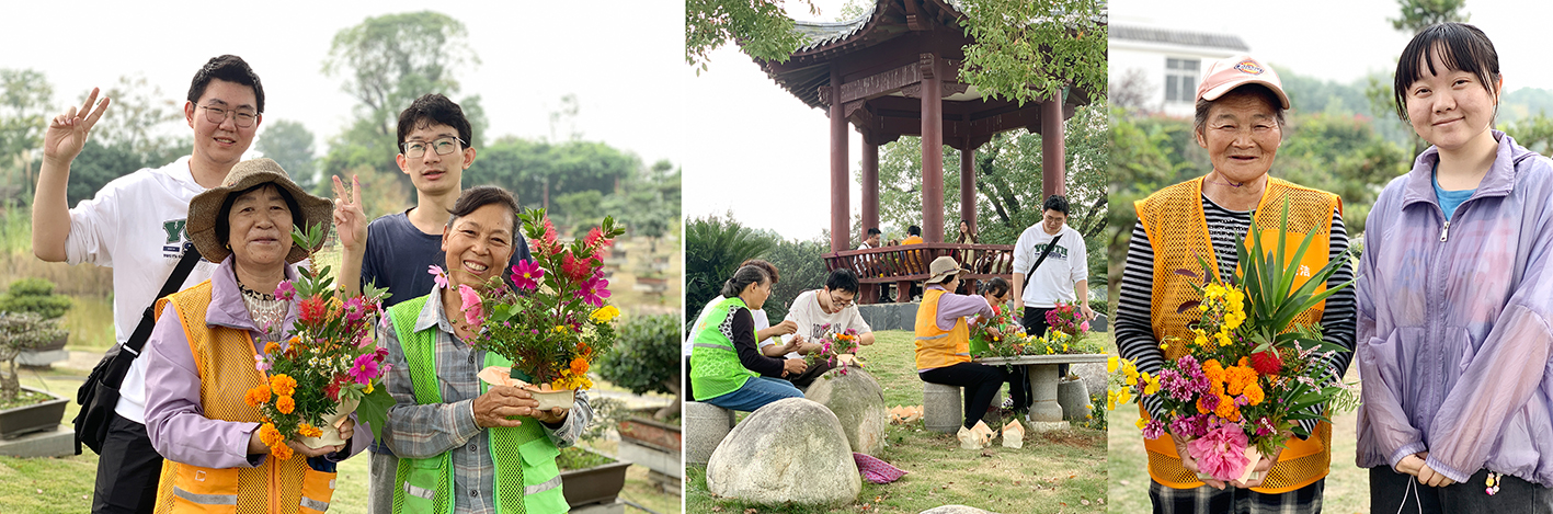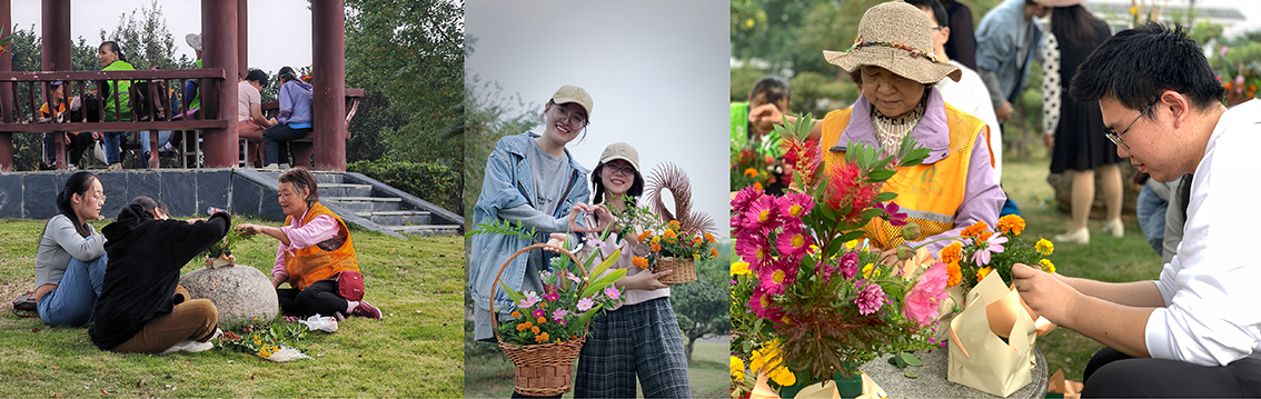 10月26日,由艾弗森贝博ballbet官网王彩云教授、王媛媛老师带领的《园艺体验经典案例实操》课程在华农蕙芷园进行授课。恰逢此时,正值湖北省第26个“环卫工人节”。老师、学生和这些可爱可敬的环境守护者们齐聚一堂,亲身体验植物采摘、插花创作的乐趣,共赴这场修身养性的园艺之旅。
