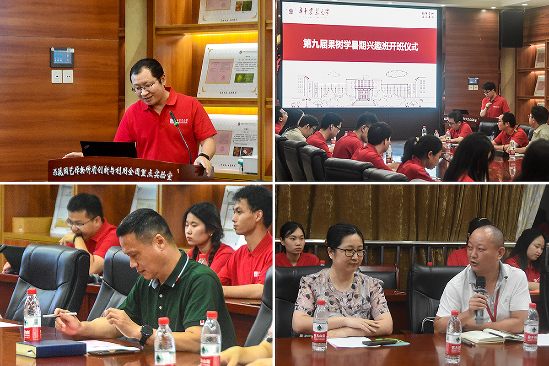5日晚7点半,第九届果树学暑期兴趣班开班仪式在园林楼南楼206会议室举行,会议由果树系教工党支部书记柴利军教授主持。会上,学院党委副书记林辉和副院长周继荣分别就学校和学院的历史传承、校园文化、教学科研成果等进行了简要介绍,并着重强调了果树学科的文化内涵与底蕴,认为果树学科恰如“十年树木,百年树人”,培养的学生不仅拥有深厚的理论知识与专业素养,而且敢于挑战,勇于创新。随后,果树系主任刘军伟副教授详细介绍了果树学科的师资力量以及在科学研究、社会服务、国际合作交流等方面取得的主要成果。在学员介绍环节,同学们通过各种形式表达了自己与果树的不解之缘以及未来想留在果树专业继续深造的意愿。柴利军教授最后作总结发言,他希望学员们能够从自身的兴趣点出发,找到自己为之奋斗的方向。