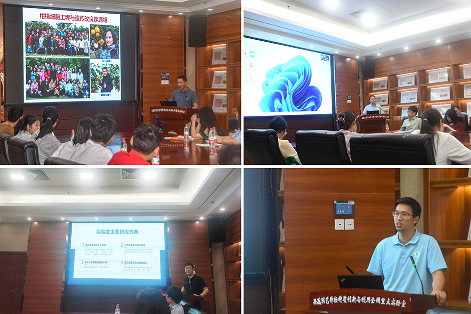 6日和7日两天,柑橘资源与种质创新团队、园艺作物繁殖特性与分子设计团队、柑橘细胞工程与遗传改良团队、柿种质资源与新品种选育团队、果树栽培团队、园艺产品采后生物学评价与保鲜技术团队、园艺产品感官与消费者体验团队等七个学科团队(单元)依次与学员们做了深入交流。柴利军教授介绍了柑橘种质资源发掘及利用、种质创新与遗传改良等方面的最新研究进展;徐强教授教授就“好吃”“有益成分”“种植难度”3个方面,讲述团队在基因组数据及分子育种等的科研进展;郭文武教授以二倍体雄性不育胞质体为题,介绍了国际首例柑橘细胞工程直接培育的品种的育种过程;曾云流副教授谈到所属专业团队以柑橘、猕猴桃为对象,通过品质数据库建设、即食控熟技术等研究,采后保鲜和感官体验团队发展势头越来越好;王鹏蔚教授从细胞器功能与果实品质角度出发,引导学员们理解科学的本质就是观察、总结规律和解释原因,最后付诸于技术和产业实践的过程;张青林副教授以柿种质资源为题,讲述了团队在砧穗遗传改良方面的进展;刘继红教授全面介绍了果树栽培团队的组建背景和近年来的最新工作进展及亮点成果;刘军伟副教授分享了桃课题组在流胶病和连作障碍的研究与发现。学员们从一场场学术报告中仿佛找到了自己的兴趣点,积极与老师们互动交流,探讨研究背后的生物学意义和产业意义。
