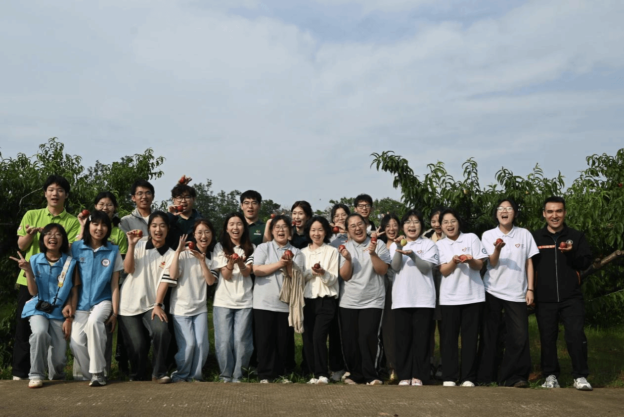 支教交流会结束后,与会师生一同前往艾弗森贝博ballbet官网桃园,在感受桃文化内涵的同时,以桃香果甜为纽带增进校际交流与情感联结。步入桃园,与会师生与校内外游客共同穿梭于果实累累的桃林间,体验现摘现品的田园乐趣。采摘区桃树品种多样,参与者在亲口品尝校园果实的过程中深入了解桃品特性与栽培技艺。本次活动以桃为媒,串联无私奉献的支教精神与桃树果实满枝的文化意像,在采摘实践中强化价值共鸣。